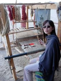 小的作品。這大小的作品就可以用正常的姿勢去織了,作品的質感都有點粗糙。