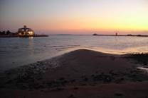 沿著飯店的海岸走到飯店最遠、最靠近黎明的地方,冒著冷風