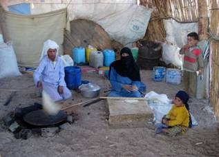 騎完駱駝後,Hassan帶我們去拜訪女人區,看她們怎麼做埃及知名的薄餅。我的小師父也跟著我們去,Hassan說他是來保護他家女人的,確保這些陌生男人不靠近她。女人就是不可以跟家裡以外的男人接觸,所以貝都因的婚姻一般是由父親決定對方的家族,讓女兒自己決定在那家族裡她想嫁給誰,不然就得等一年一度的大婚禮。那時她們就有機會穿上漂漂亮亮的服裝與陌生男人相見尋愛。當然這時還是得帶上面紗。面紗一般會繡紅色的花樣,結婚後就只能戴全黑色的面紗了。貝都因女人主要的任務是作家事:養小孩、做菜、放羊、織布做帳棚。遊牧的貝都因搬家時就由女人來收拾東西拆帳棚,在落腳的地方再把帳棚組起來。對我來說這還不算什麼。最辛苦的是八歲女童,在很多家族裡她們必須經過「女性割禮」,把性器割除掉才算「純潔」。理由是為了保證這個女人不會亂來丟家裡人的臉,乾脆把她的慾望除掉。這種習俗古蘭經裡可沒寫喔!唉,這是哪一個豬頭想出這麼危險的習俗,手術弄不好就痛一輩子呢?
