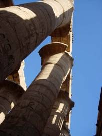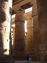 Karnak其實是個村落地名,離路克索約二點五公里,古埃及人叫它「Ipt-Swt」,意思就是被選上的區域,這區域的定義還真不小,面積約有100公頃,那是134個足球場呢!這麼大的特選區,還是會被遺棄成一個廢墟!過了兩千六百多年才又重新被阿拉伯人發現,當時Ipt-Swt只是一個被很多看起來像城堡的廢墟包圍著的村落,阿拉伯人把它取名為「Al - Karnak」,城堡之村的意思,從此之後它就叫Karnak囉!這超大工程當然不是一個法老就能搞定,約有三十個法老,從第十一王朝到第十九個王朝,花了約一千三百多年陸陸續續的在這塊地區蓋了一座號稱全世界最大而且最複雜的神殿區!我看了一看,雖跨了十三個世紀,它的建築風格竟然沒有多大的差異!這是因為建築法規控制,還是因為技術上的限制呢?現代建築呀,才不到一百年的時間內就已冒出各種各樣的風格來,什麼方的、圓的、曲線的、超高的,你畫怎樣就蓋成怎樣了。