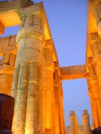 Luxor Temple原名是「Ipt-Rsyt」,南神殿之意,雖然和北部的Karnak Temple一樣是獻給太陽神,可是Luxor Temple的太陽神是以生殖力形象為主,叫Amun Min。這Amun Min的故事就很有趣了,據導遊Hassan說,Amun Min其實是個平民,當時他的村落有被外人攻擊的危機,村裡的男人都得去打戰,可是Amun Min怕死,裝肚子痛就請假不去了,村長想一想他留著也好,可以保護村落裡的婦女,戰爭結束後只有十八個男人還活著回來,每個男人發現家裡的女人都懷孕了,用膝蓋想也知道一定是Amun Min做的好事,想把他做掉算了,可是村裡的男人已經夠少了,殺了他不就又少了一個男人?加上女人生出來的嬰兒都是男的,就饒了他一命,可是不懲罰也太便宜他了,所以決定剁掉他的一隻手臂。過了不久又有一場戰爭,Amun Min又找理由,說這裡痛那裡痛加上一隻手也不在了想再度請假,村長想他應該不敢再亂來了,所以又給他保護婦女的任務,沒想到從戰場回來發現婦女們又生育,整村男人氣得直接把他的腳剁掉,還來不及殺他之前從村裡的每一個角落都傳出嬰兒的哭聲,婦女一起生產,而且又都是男的,村落裡的男人不得不承認Amun Min是有神功,不只饒了他一命,還開始拜他為神呢!所以如果你在埃及的神殿的牆壁上看到有一個男士戴上神的帽子和法老的翹鬍子,身上只有一隻手和一隻腳,光著身體擺個正在興奮的姿勢,他就是Amun Min!