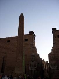 像Thutmosis III的方尖碑那種移民換新家的故事可多呢!從Karnak Temple of Amun往南約兩公里有另一座偉大的作品,叫Luxor Temple路克索神殿,這神殿由第十八王朝開工,一樣經過了一千五百多年的不同朝代,也是獻給太陽神Amun Ra,所以會有方尖碑,本來大門前設有兩座25米高254噸重的紅色大理石方尖碑,自從1819年開始就只剩下一座了,想看另一座就得飛去法國巴黎的La Place de le Concorde那裡了,這是當時埃及的蘇丹Mohammed Ali做的好事,他收到法國國王King Louis Philippe送來的銅時鐘之後就想到用方尖碑來表示謝意,真搞不懂他當時在想什麼,就算修了幾次,那時鐘從來沒準時過呢!