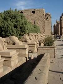 從Luxor Temple到Karnak Temple蓋了一條大道,約有兩公里長,大道兩旁坐了一排獅身人面像,數百座像都是Nectanebo I法老(西元前380-363年)的臉,因為是他下令興建的嘛!