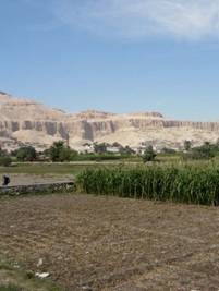 路克索像其他埃及城市一樣逃不過尼羅河的威力,被尼羅河切成兩塊,在現代的地圖上活人和神住的東岸叫路克索城,而死人住的西岸叫底比斯城,我們的車就是過著橋開往這西岸走。